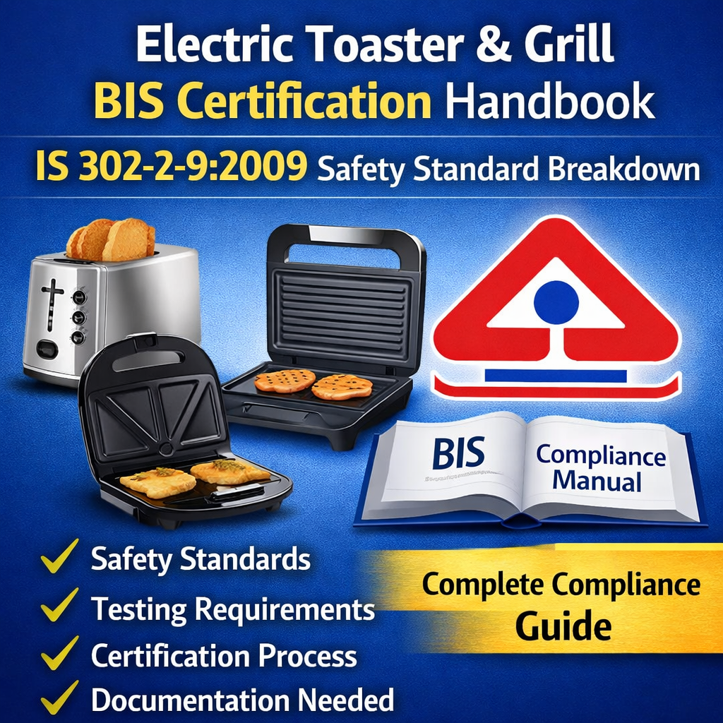 This handbook provides a complete breakdown of BIS certification requirements for electric toasters and grills under IS 302-2-9:2009, including compliance procedures, testing requirements, and certification guidelines.
